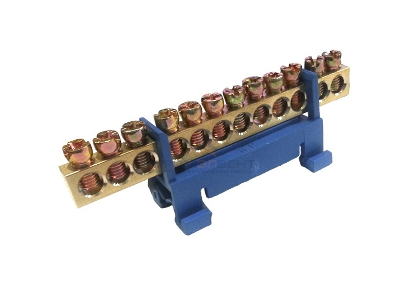 Заявки принимаются с реквизитами через почтуПрименяются в щитовом оборудовании для подсоединения нулевых рабочих (N) и нулевых защитных проводов (РЕ). Крепление шины предусмотрено по центру (типы 8/1; 14/1) и по краям (типы 8/2 и 14/2) через изолятор нулевой шины на 35 мм монтажную DIN-рейку и через угловые изоляторы нулевой шины, а также непосредственно на панель щита. При подключении к шинам медных многожильных проводов рекомендуется оконцевание их наконечниками-гильзами. Выполнены из латуни.